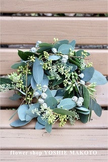 その後、SNSのInstagramを始めてみると、ユーカリだけのリースを作る花屋が世界中にたくさんいることを知りました。乾燥しやすいユーカリは、リースにすることでその特徴が存分に生かされます。花屋の発想は、万国共通なのだと感じたものです。