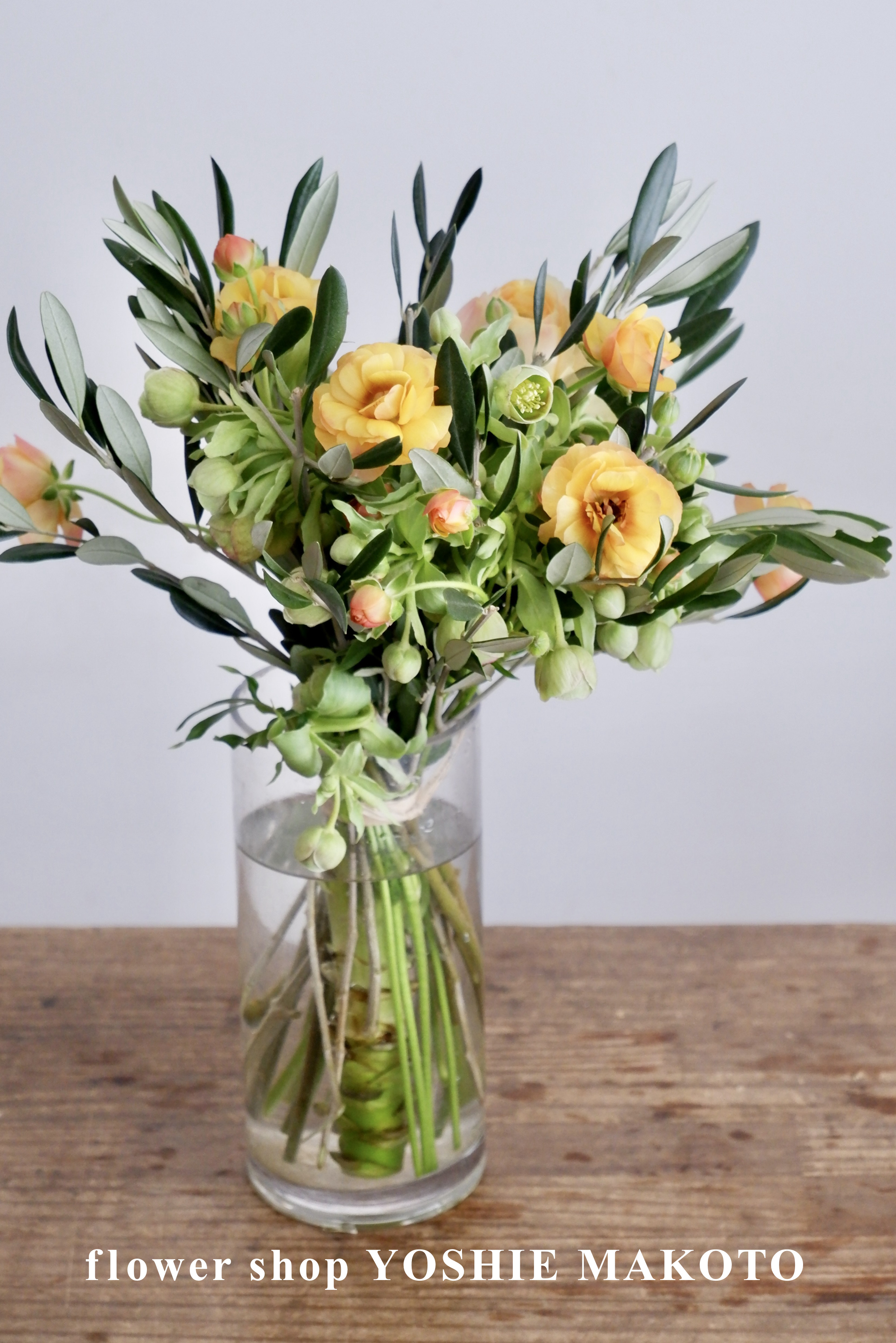 フラワーショップ・ヨシエマコトは札幌市中央区のミニ大通に面しています。季節の花で作るスパイラルブーケはフラワーギフトとしても人気で、白と緑が定番です。ブーケ作りのレッスンも行っています。素朴な包装も特徴的です。
