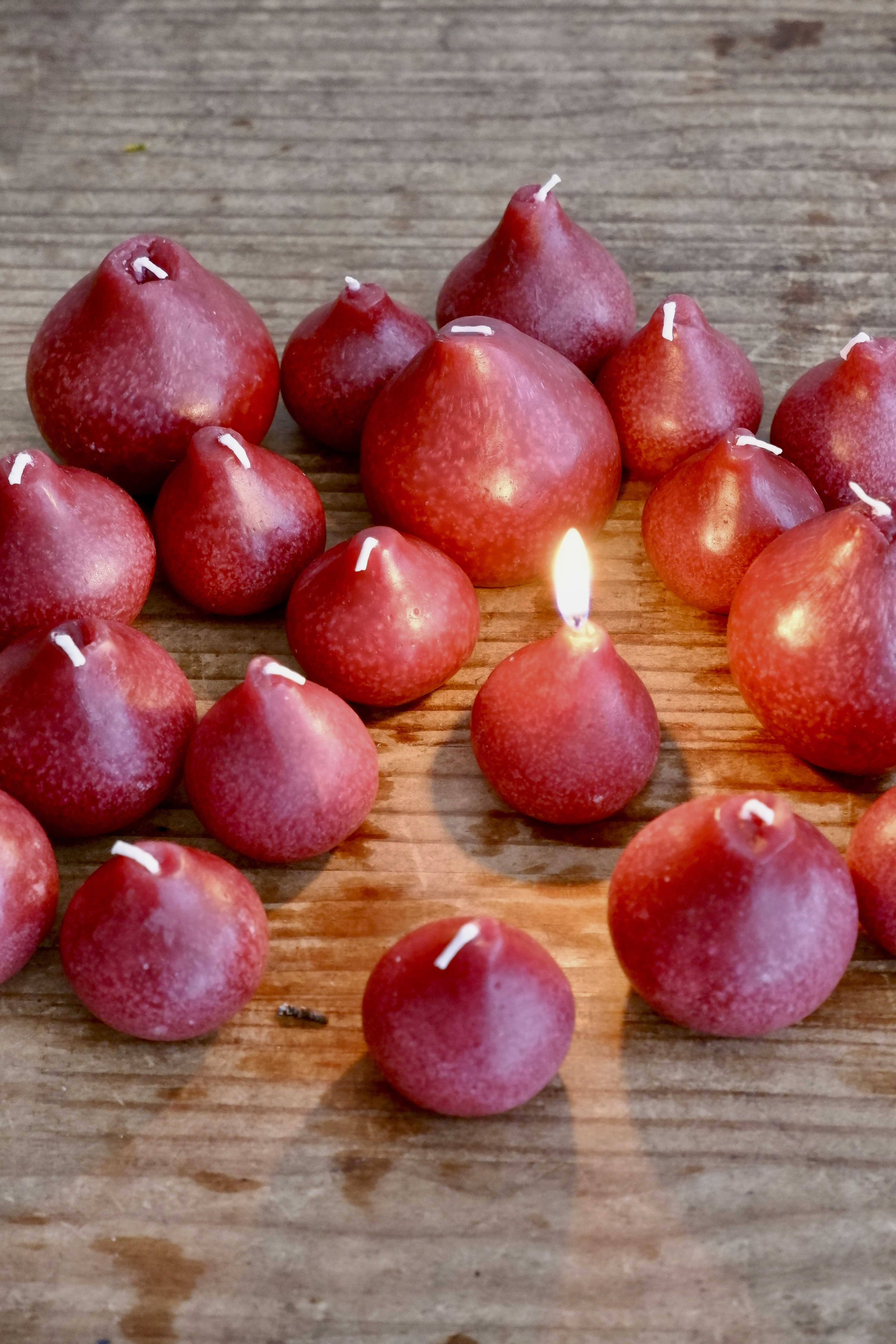 オリジナルキャンドルです。白、クリーム、ベージュ、えんじの4色、4サイズ。