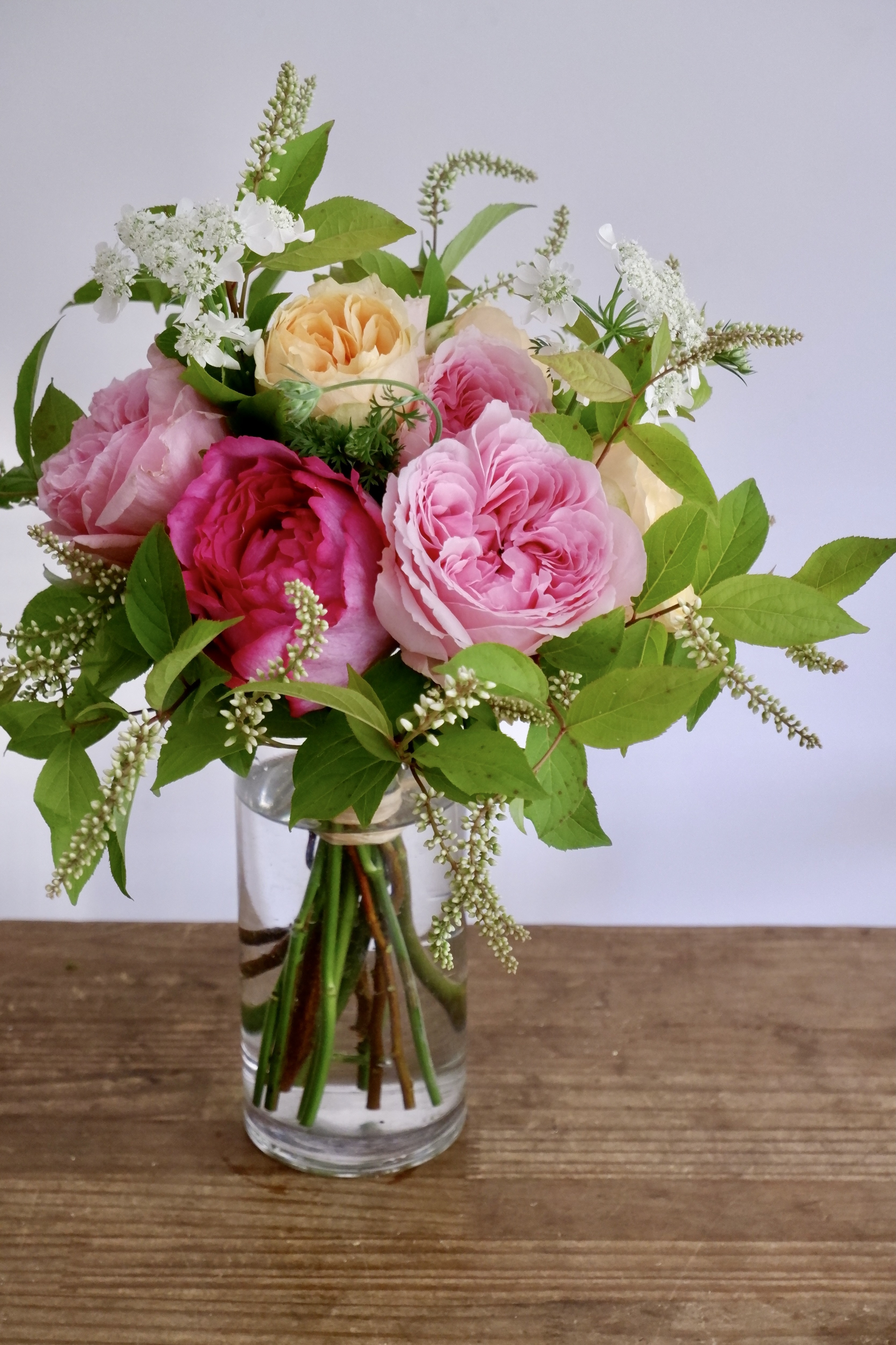 やさしいロココ調の色合いでお仕立てする花束は、